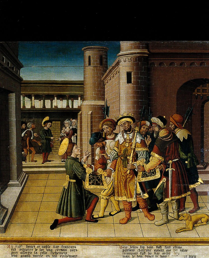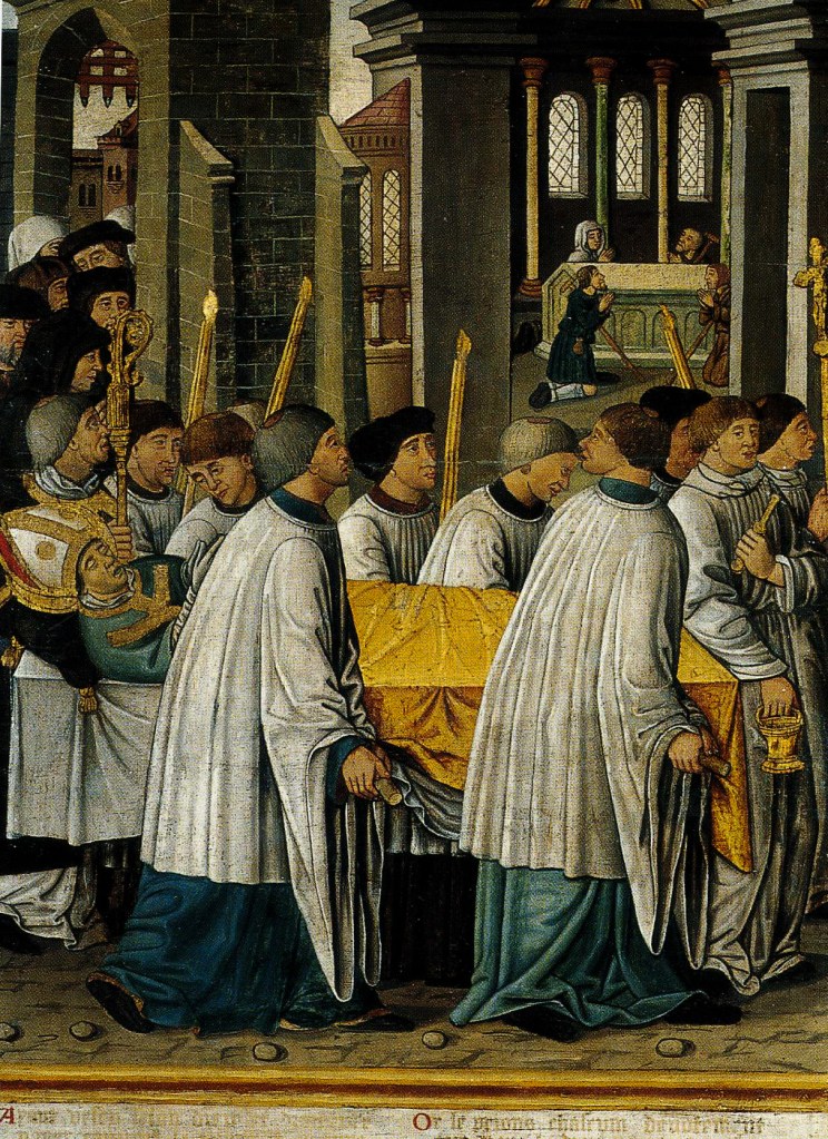 A l’arrière plan, des miracles sont réalisés sur sa tombe.